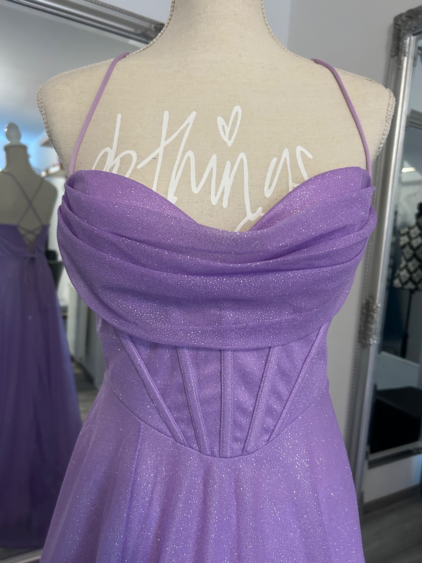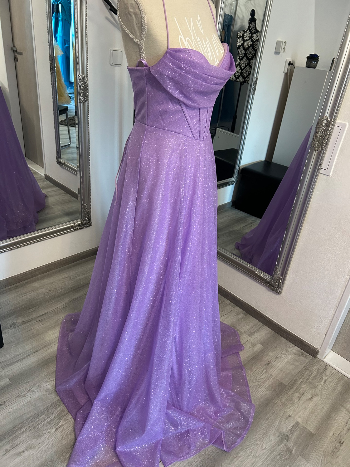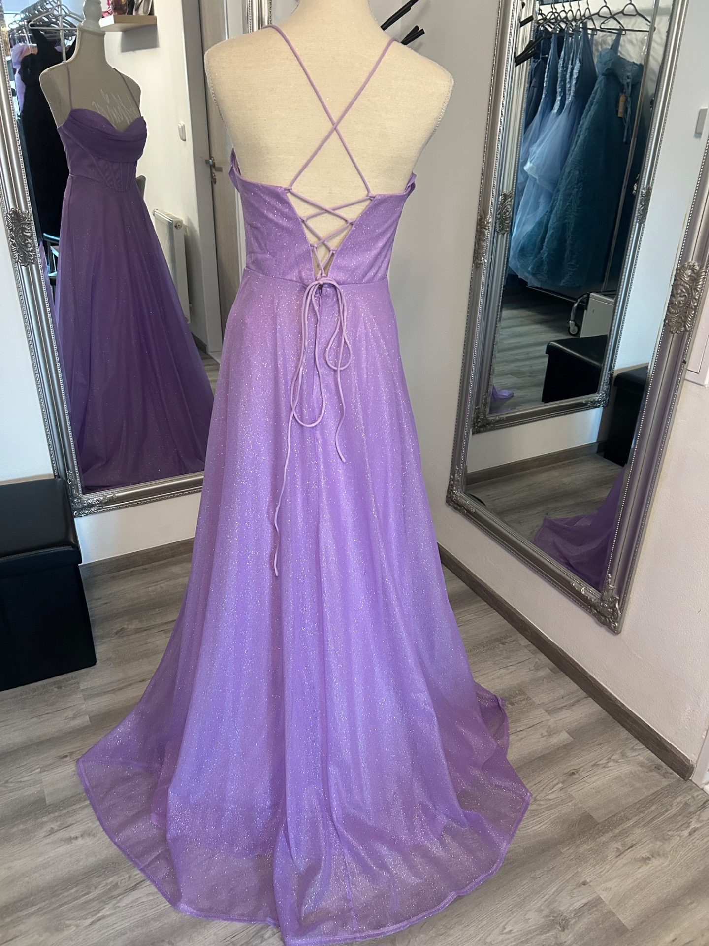luxusní třpytivé šaty s rozparkem a vázačkou
