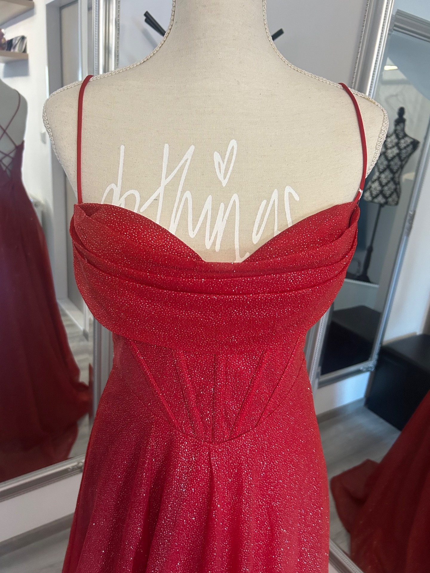 luxusní třpytivé šaty s rozparkem a vázačkou