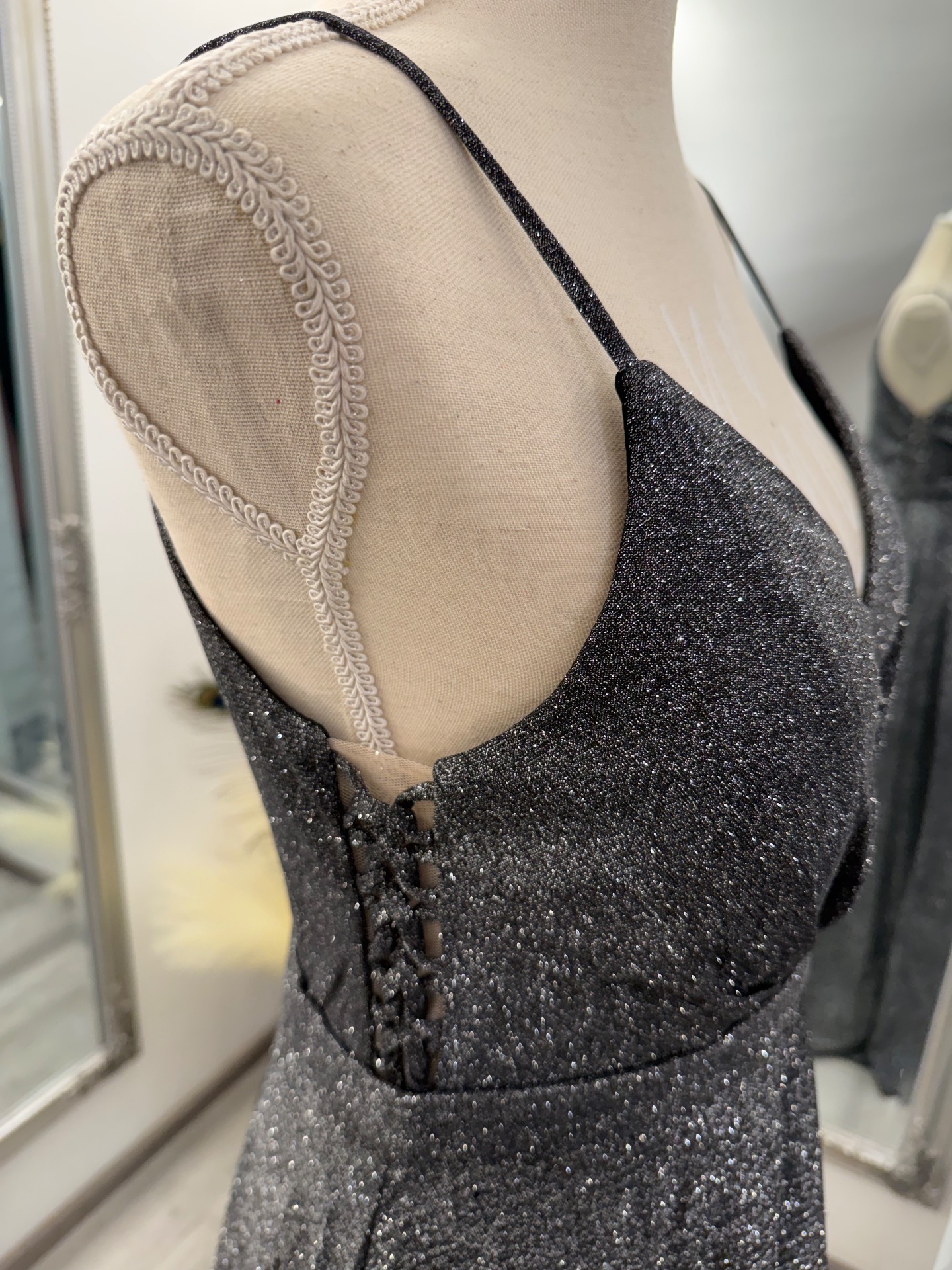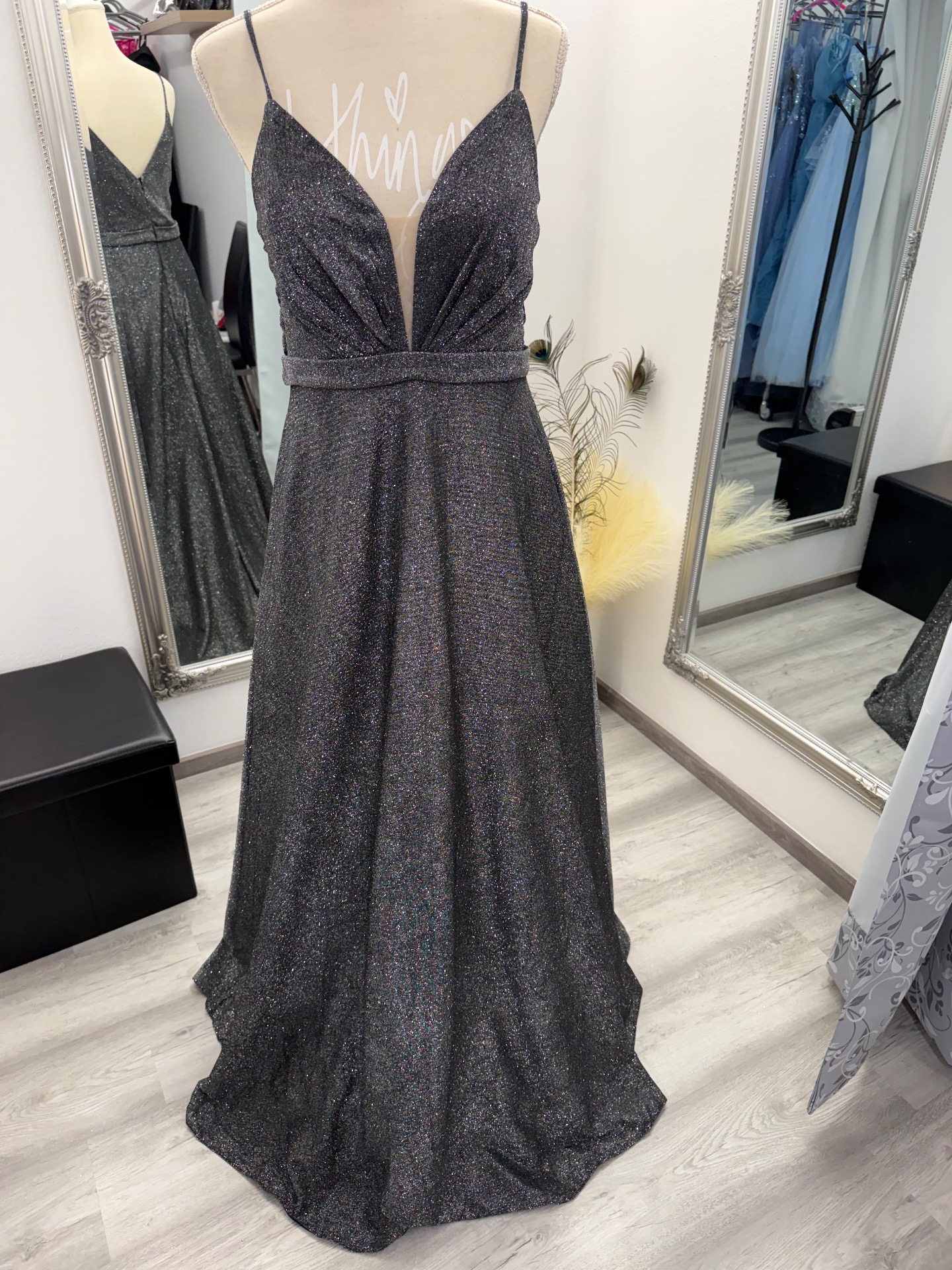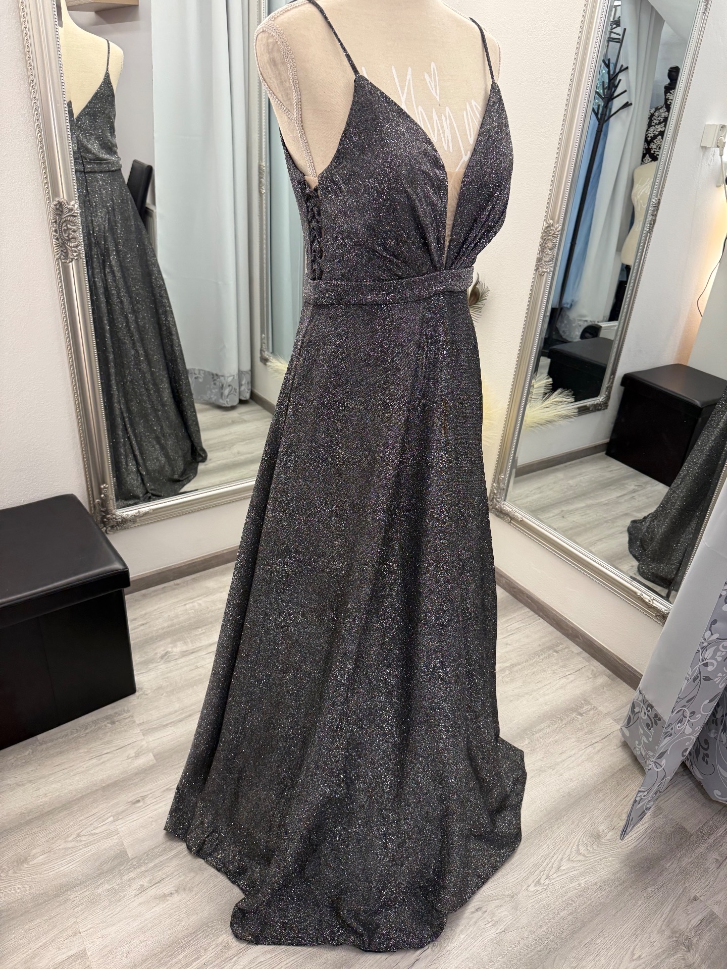 Společenské šaty - stříbrno -černá barva v nádherném třpytu
