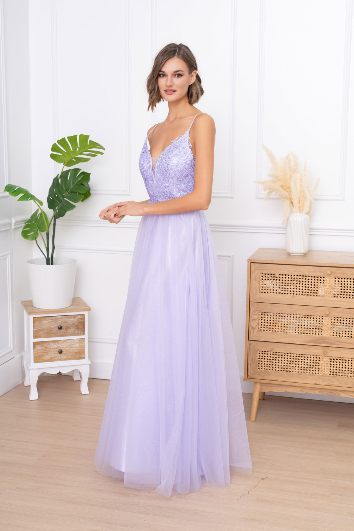 Společenské Šaty ve vel. 34 - 42 světle fialový třpyt