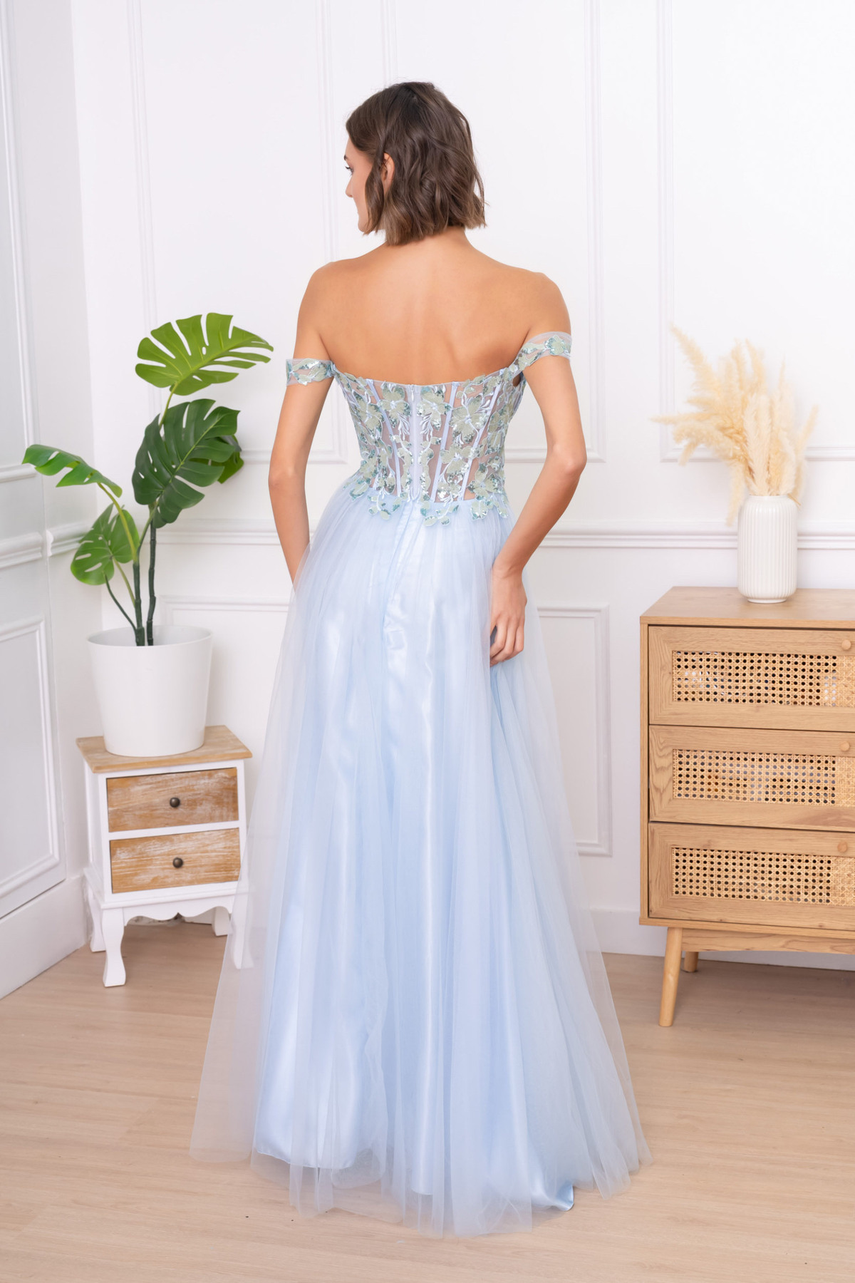 Krásné elegantní šaty s rozparkem a jemným třpytem .
