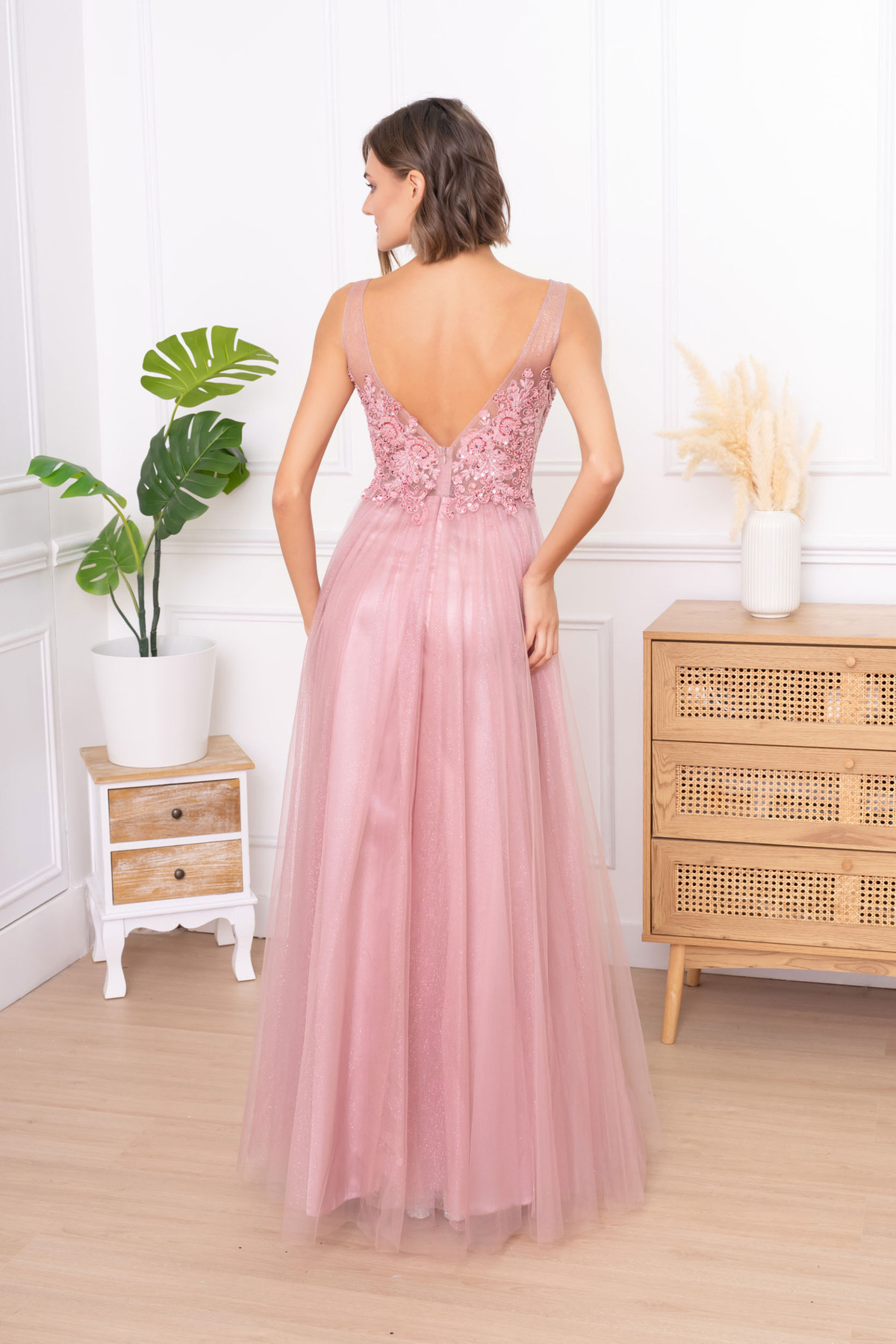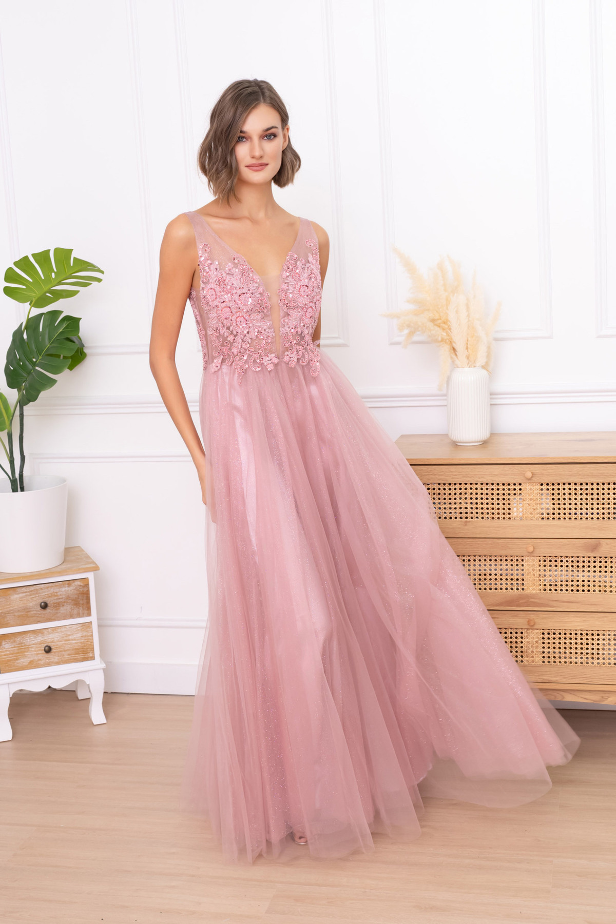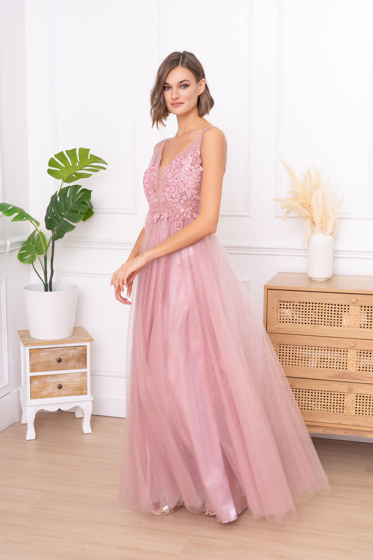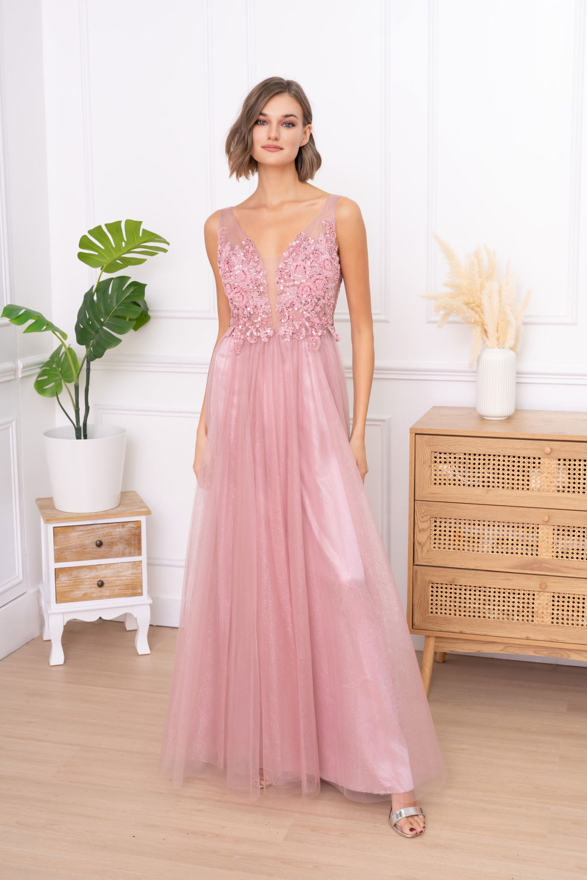 Krásné elegantní šaty s rozparkem a jemným třpytem .