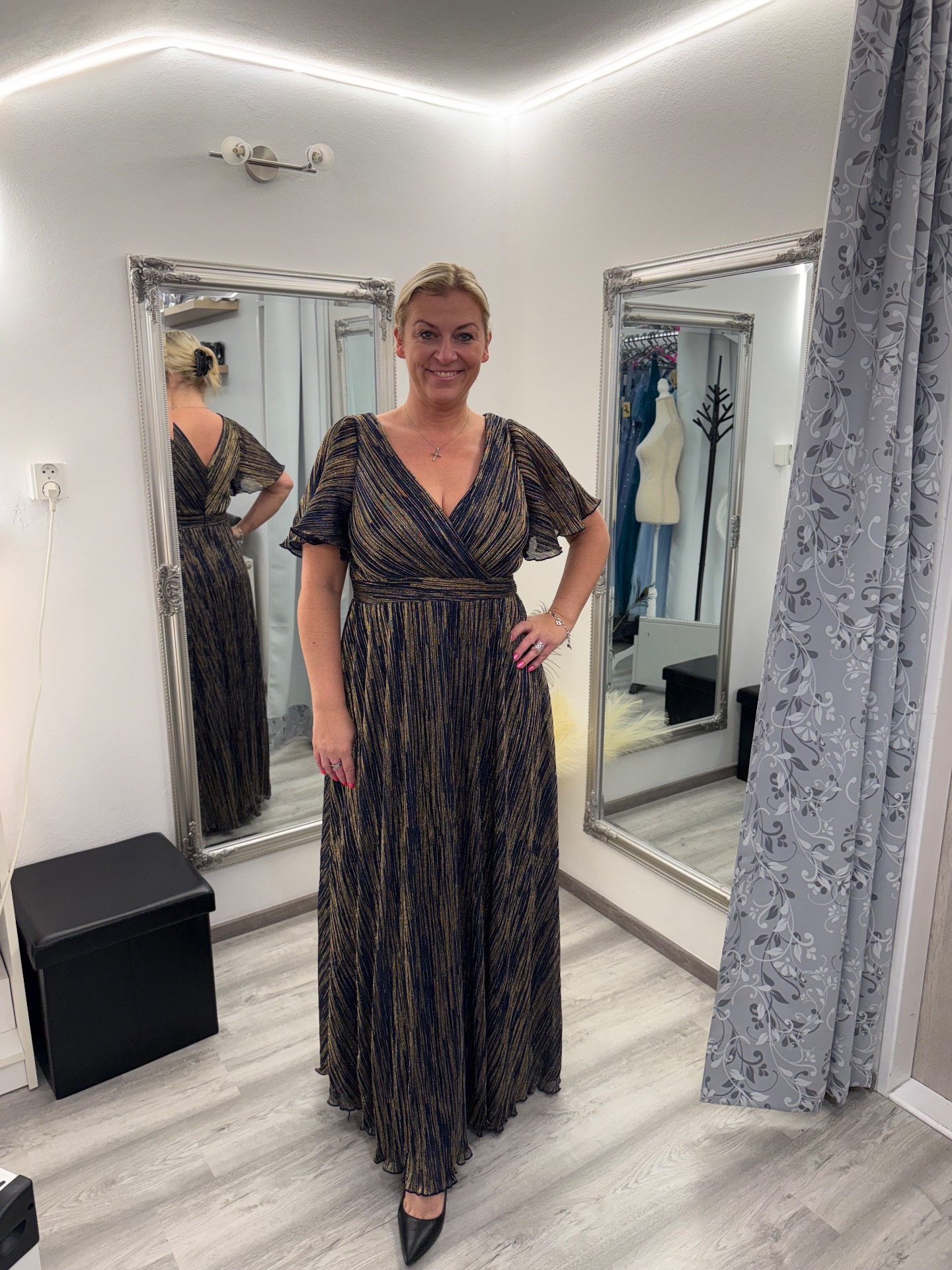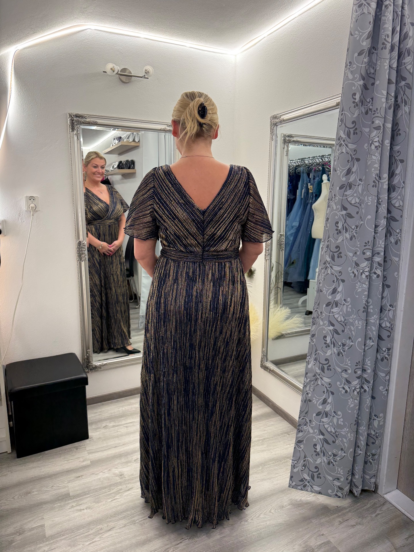 Společenské Šaty ve vel. 46- 52 - třpytivé modro - zlaté